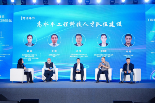 京津冀国家技术创新中心教育学院副院长杨新,北京航空航天大学教授王辉,北京国电高科科技有限公司董事长兼CEO、北京市科协“卓越工程师成长计划”入选人吕强,视联动力信息技术股份有限公司副总裁、第二十四届优秀青年工程师获奖者王艳辉,中关村人才协会秘书长冷明,围绕“京津冀高水平工程人才队伍建设”这一主题,进行了交流对话,分享了他们对京津冀人才一体化建设和人才需求培养的见解和实践,为现场的青年工程科技人才发展提供了有益的启示和借鉴。