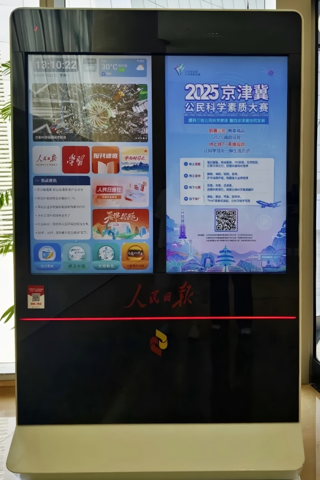 2025年京津冀公民科学素质大赛与人民日报电子阅报栏的携手,既是科普传播形式的革新,也是落实《全民科学素质行动规划纲要》的重要实践。在数智化浪潮下,科学知识的传播正变得更轻盈、更生动,而每一位走近阅报栏的公众,都将成为弘扬科学精神的参与者和受益者。