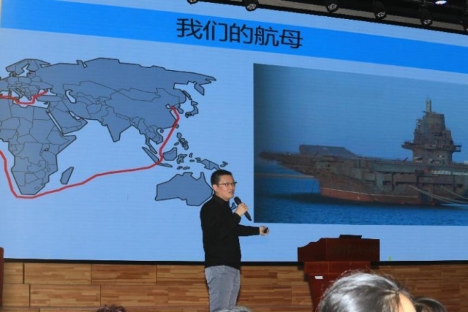 《现代舰船》杂志主编、中国科普作家协会国防科普委员会会员崔轶亮走进北京市第二十二中学,以《航空母舰发展史》为题开展讲座