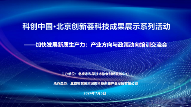 7月5日,由北京市科学技术协会创新服务中心主办,北京智慧黄河城市科技创新产业发展有限公司承办的“科创中国·北京创新荟2024年第一期科技成果展示系列活动——加快发展新质生产力:产业方向与政策动向培训交流会”在创新荟路演大厅举办。活动吸引来自园区、高校、投资机构、金融机构、科技型企业等单位的70余名代表参加。