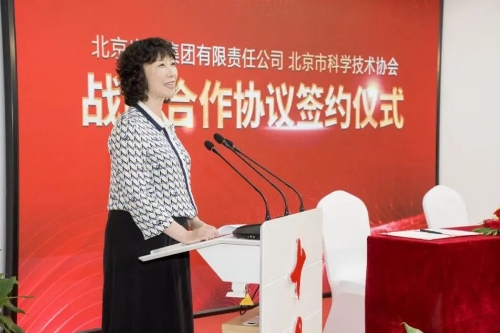 活动中北京出版集团副总经理、总编辑赵彤,北京市科学技术协会党组成员、副主席刘晓勘代表双方签署战略合作协议。