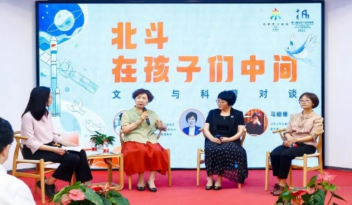 签约仪式后,中国散文学会会长、《北斗牵着我的手》作者叶梅,北京科技记者编辑协会副理事长、知名航天科普专家周武,北京少年儿童出版社副社长、本书策划马姗姗以“北斗在孩子们中间”为主题,围绕科普创作、青少年科普推广与实践等话题带来精彩对谈。