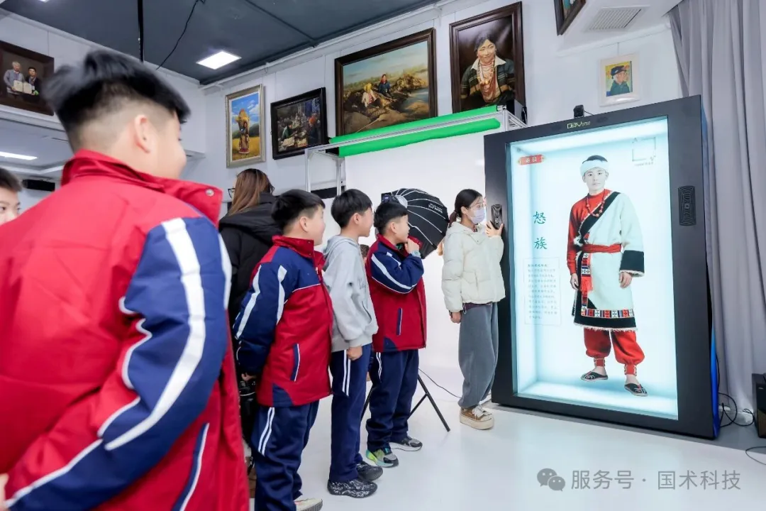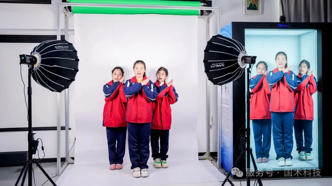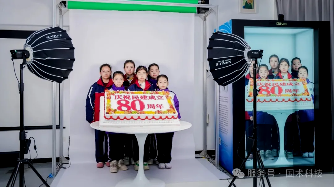 通过科普老师的讲解,同学们了解到,“中华民族服饰AI换装”和“AI卡通换脸”都是基于“OBVerse奥比全息舱+复刻数字人”开发的衍生应用产品。“OBVerse奥比全息舱+复刻数字人”是一个快速高效的4K超高清裸眼3D内容创作生成平台,借助这一创新载体,大家或以歌声或以祝福,复刻下对民建的美好祝愿,以此献礼民建成立80周年。