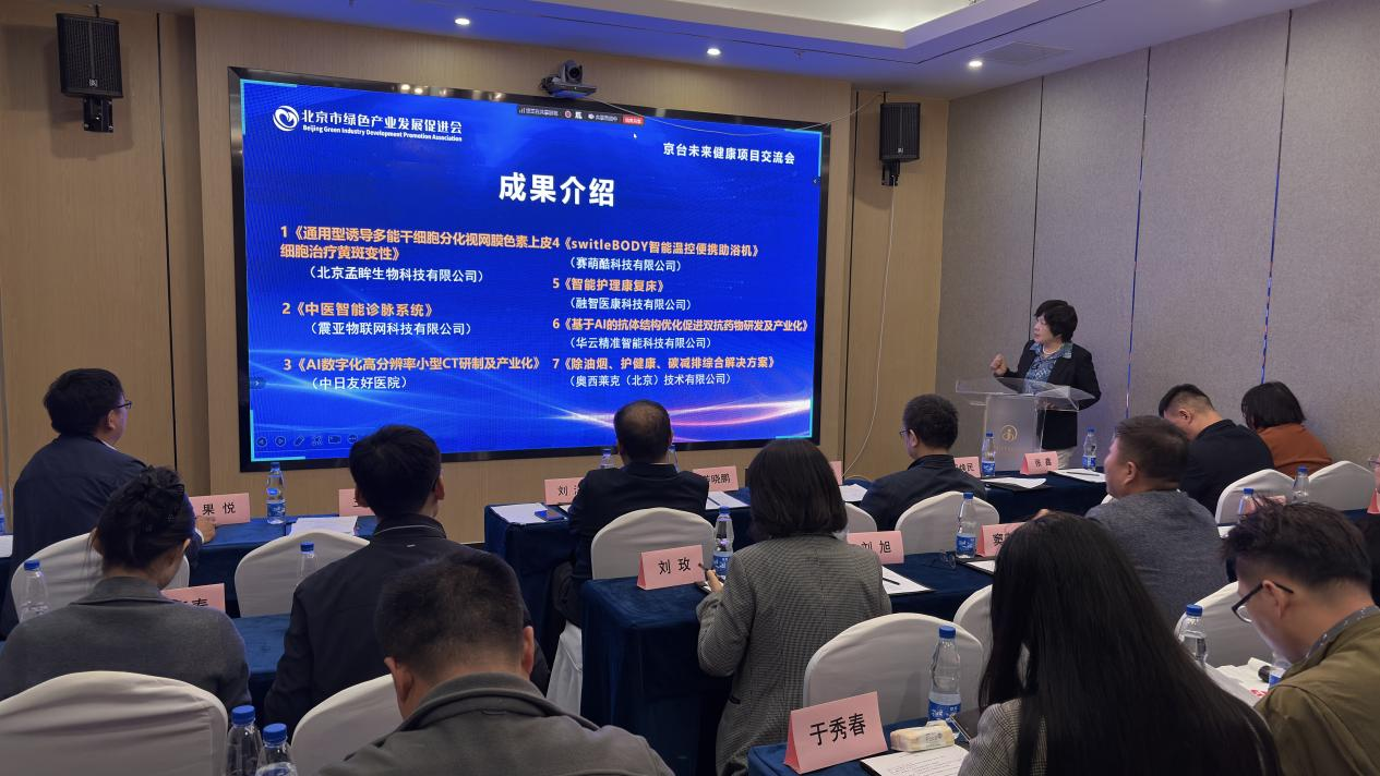 10月16日,由北京市科协科技交流中心等单位主办、北京市绿促会等单位承办的“第28届京台科技论坛系列活动—京台未来健康项目总结交流会”成功举办。本次会议是第28届京台科技论坛—未来健康发展对接会的收官之作,为本年度京台未来健康科技交流合作画上了完美的句号。