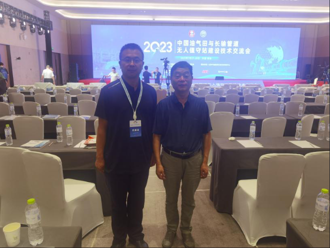 图为北京物联网学会党建小组组长王志良,学会秘书长解迎刚参加7月26日至28日在青岛举办的中国油气田与长输管道无人值守站建设技术交流会。