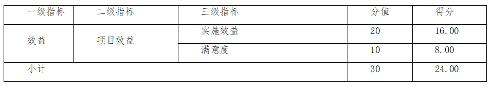 项目实施在宣扬科技工作者精神、提高公众科学素质、提升科协社会形象等具备明显的促进作用,但项目缺乏群众知晓度、科技工作者社会地位等关键性效益数据,较难摸清项目效益的中长期变化发展趋势,满意度调研对象广度不足。该指标分值30分,得分24.00分。下设1个二级指标,2个三级指标。评分见表。