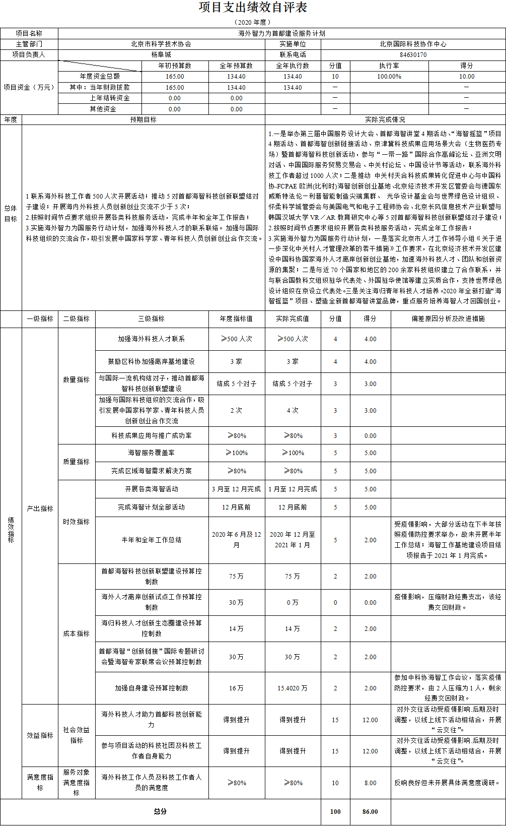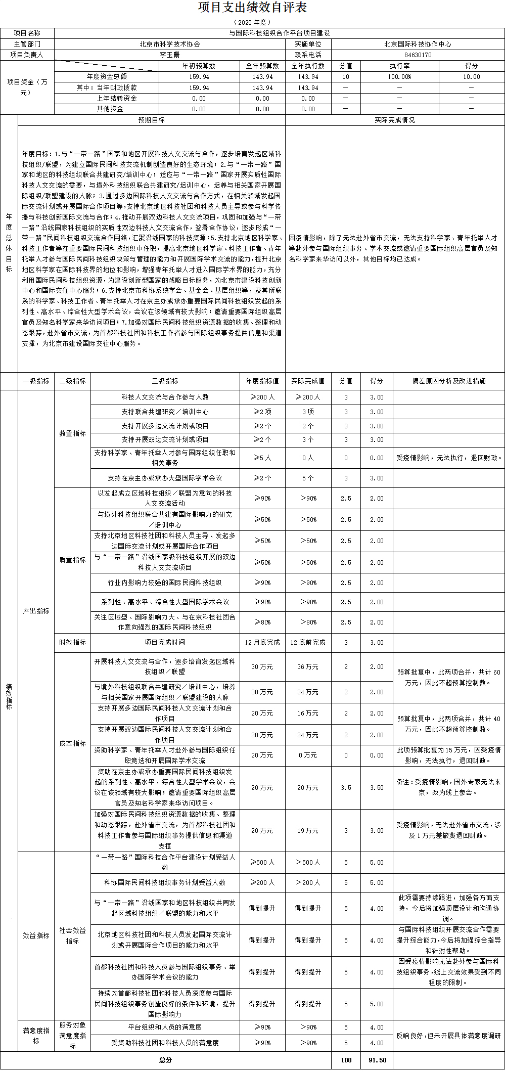 三、项目支出绩效自评表