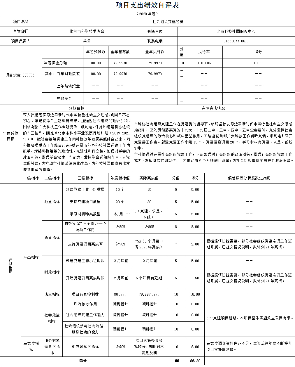 三、项目支出绩效自评表