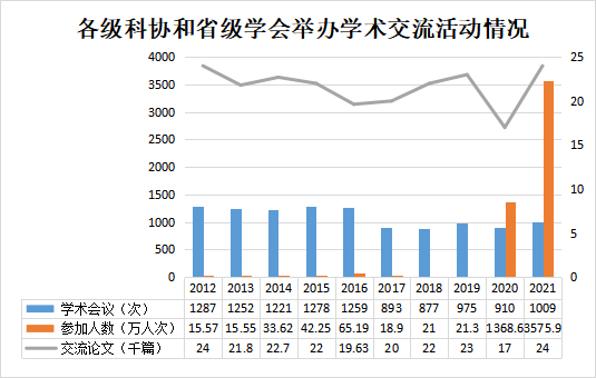 各级科协和省级学会共举办学术会议1009场次,参加人数3575.9万人次,交流论文2.4万篇。