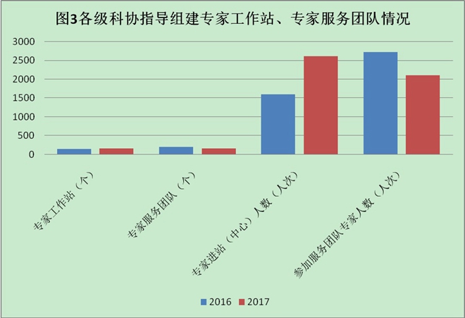 各级科协指导组建专家工作站[14]161个,全年组织进站专家2610人次。组建专家服务团队[15]158个,参加服务团队专家2103人次。