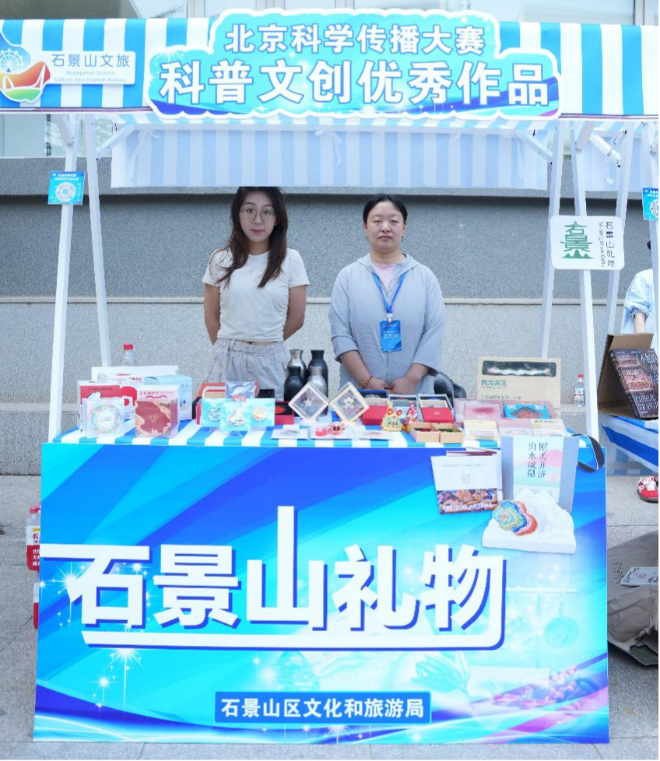 活动期间,正值石景山区2025年全国科技工作者日主场活动,现场精心准备了一批2024年北京科学传播大赛文创赛道的优秀作品,举办“可触摸的科普文创”主题市集,充分展现了科学与文化深度融合的创意成果,为活动增添了浓厚的科技氛围与文化底蕴。