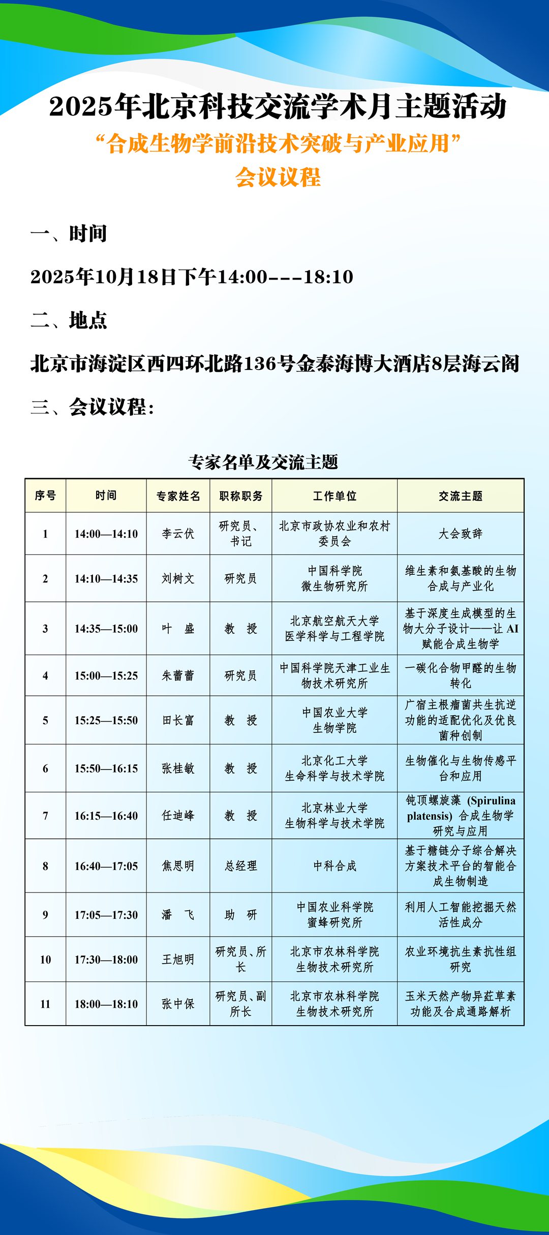 2025年北京科技交流学术月“合成生物学前沿技术突破与产业应用”主题活动