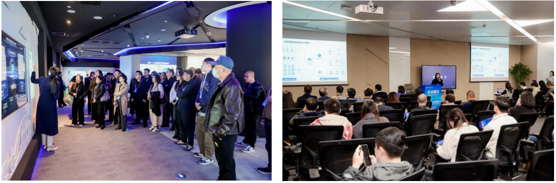 10月24日,活动走进腾讯北京总部,与会代表参观了腾讯数字化展厅,深入了解其发展历程、核心业务布局与前沿科技应用。座谈交流环节,腾讯云技术专家围绕“腾讯会议助力企业打造AI时代数字化生产力”“腾讯云AI赋能协同办公创新”“企业智能体建设实践”等主题展开前沿分享。参会企业代表就数据加密、访问控制及AI技术应用等议题展开热烈讨论,助力大中小企业间技术路径与业务场景的深度对接。活动吸引了中国铁塔股份有限公司科协、中科星图低空公司、北京兆锟科技有限公司等60余名企业代表参会。