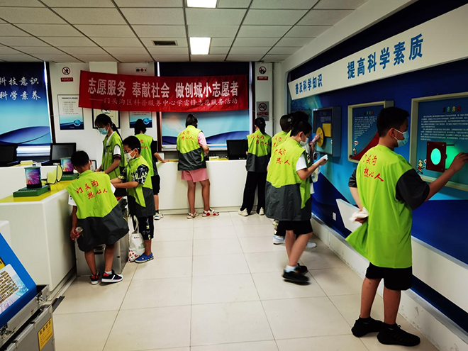 8月9日,门头沟区科普服务中心在门头沟区科技馆开展以“志愿服务,奉献社会,做创城小志愿者”的学雷锋志愿服务活动。