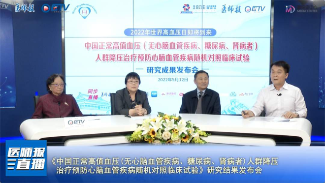 5月12日,《中国人群正常高值范围血压无心脑血管疾病、糖尿病、肾病者降压治疗和安慰剂对照临床试验》研究成果发布会在线上召开,对此进行了权威回答。该研究不仅是国际上正常高值血压的最大临床研究,也是唯一的正常高值血压硬终点的研究。
