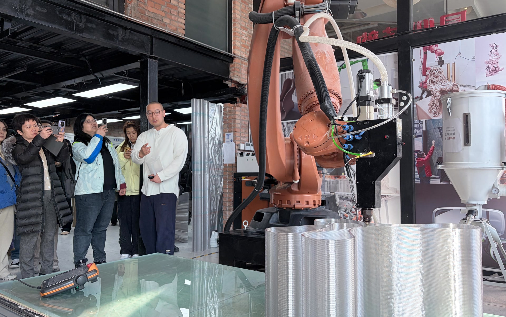 北京10号线“青创村”,一幢老厂房如今变身充满未来感的“梦工场”实验室。创始人张翊超正在帮年轻人“圆梦”——用大型3D打印机将其设计的椅子一点点变成现实。