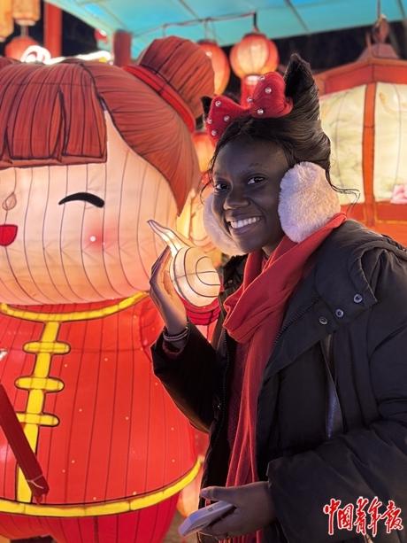 赞比亚青年晶玉在天津国际灯会。中青报·中青网记者 王目雨/摄