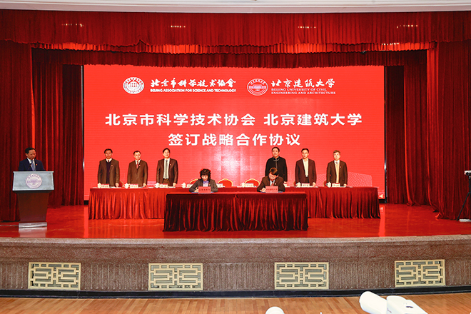 会上,北京市科协与北京建筑大学签订了战略合作协议,双方将在推动开展高端学术交流、促进科技人才培养创新、服务高校开放融合发展、服务党和政府科学决策、共建科普资源开发与合作平台等方面开展多层次合作。