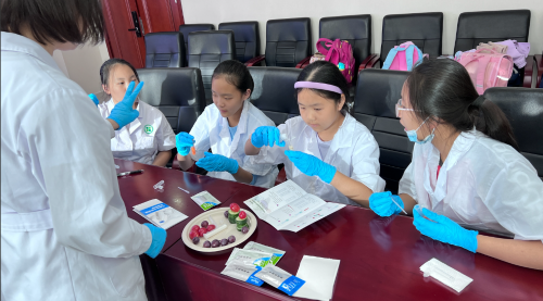 活动设置了知识讲座、视频观看与趣味实验共3个环节。在知识讲座环节,学会专家讲解了食品营养与安全知识,并与同学们进行了问答互动;在视频观看环节,同学们了解了农药及农药残留的基本知识,提高了食品安全意识;在趣味实验环节,同学们动手参与了果蔬糖度快速检测、牛奶中三聚氰胺快速检测、果蔬中多菌灵快速检测等实验,充分体验了科学实验的乐趣。