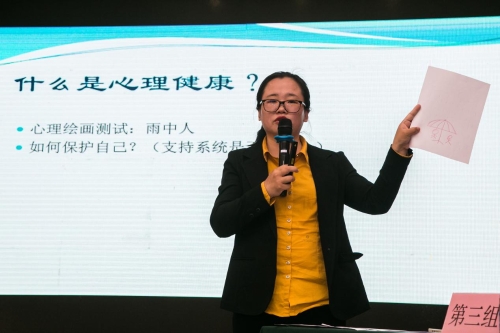 讲座中,杨老师通过互动答题、心理学图片测试、绘制命题图画等方式,增强了志愿者们的参与感,使他们在多样化的互动中进一步深化对心理学的认识。在命题图画的绘制环节,杨老师对大家提交的“雨中人”画作进行了细致分析,带领志愿者们从不同维度认识自身压力及自我保护能力。