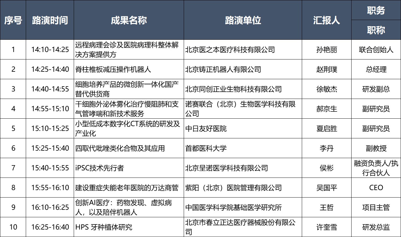 14:10-16:40 医药健康项目路演(每个项目路演8分钟+专家提问7分钟)